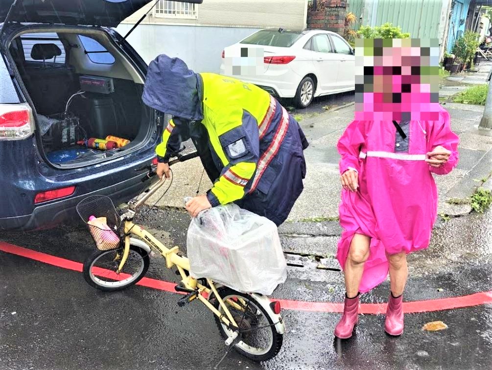〔焦點時報/記者李寧嘉義市報導〕嘉義市政府警察局第二分局南門派出所警員楊智鴻、林義倫及實習生吳翊銨於日前擔服巡邏勤務時,當時外頭正下著傾盆大雨,卻見1名身穿雨衣的老婦人牽著腳踏車至派出所報案,焦急稱說自己忘記回家的路怎麼走了,請求警方協助,警方了解狀況後,便駕駛巡邏車將老婦人平安送返家。