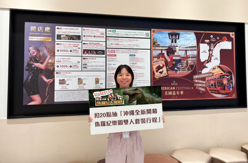 SKM Park Outlets高雄草衙 本次開店慶活動最大亮點之一,就是推出夢幻旅遊抽獎,8/1(五)-8/31(日)只要扣20點,即可參加「沖繩侏儸紀大冒險」抽獎活動,有機會免費獲得目前全球矚目,7/25(五)全新開幕的沖繩JUNGLIA侏羅紀主題樂園雙人套裝行程,多款行程任意挑選,涵蓋機票、住宿,輕鬆感受濃厚沖繩風情與恐龍探險魅力。為了歡慶開店,8/10(日)特別包場國賓電影院,舉辦獨家「扣點看電影」活動,8/1(五)開始,新光三越會員可以到APP點數專區扣150點兌換電影票,於8/10(日)指定場次至SKM Park Outlets高雄草衙 的國賓電影院進場觀賞8/8(五)新上映的《鬼滅之刃劇場版 無限城篇》,喜愛此部動漫的漫迷們千萬別錯過!