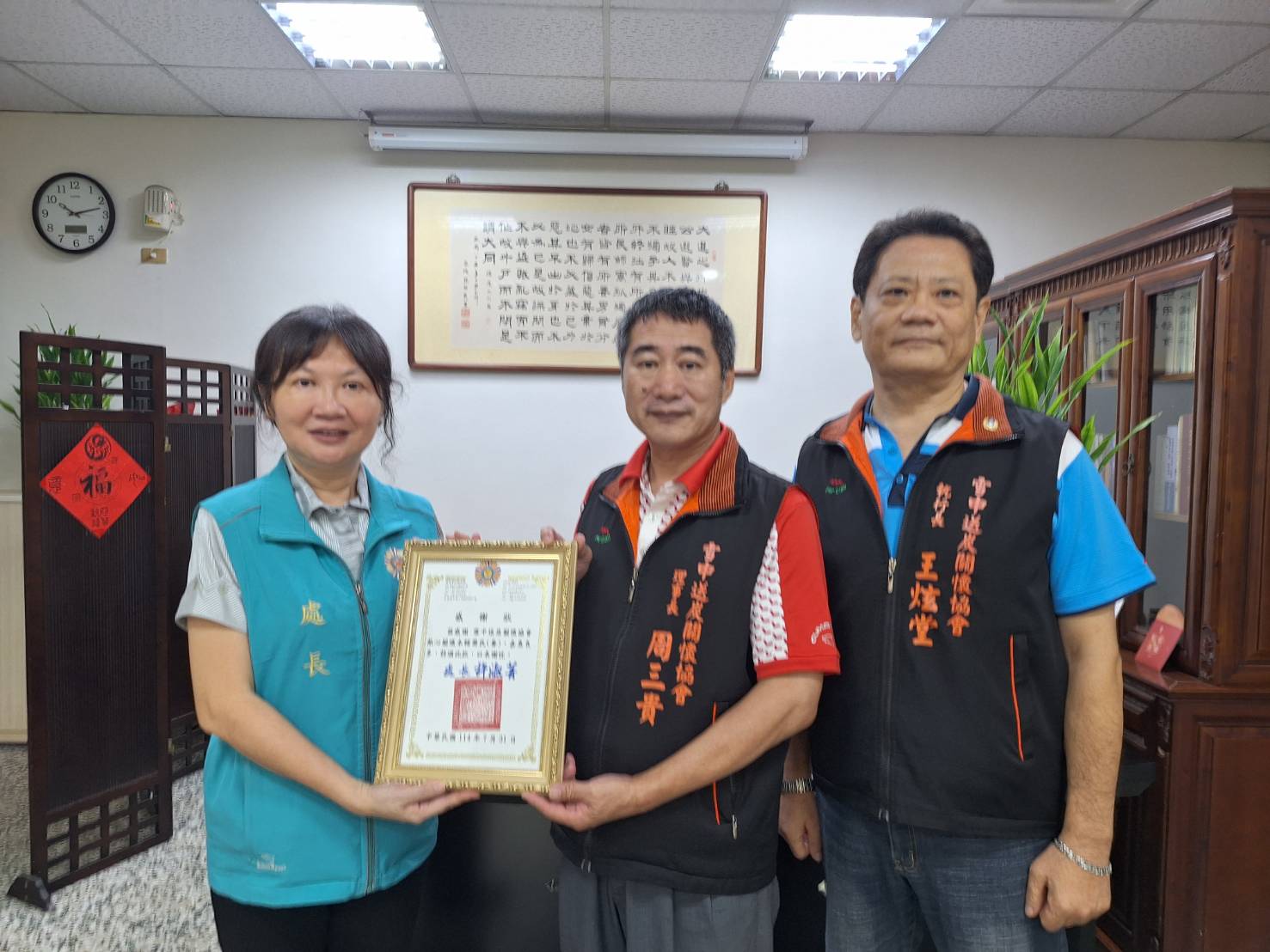 〔News586/記者呂明鴻嘉義市報導〕嘉義地區近期接連遭受「丹娜絲」颱風及豪大雨襲擊,重創沿海多處家園,災後重建亟待支援,為協助當地受災退除役官兵眷,社會各界善心團體再度伸出援手,並由雪中送炭關懷協會發起,聯合中華民國榮光地產聯合服務協會及竣旭有限公司共同捐贈善款,並由雪中送炭關懷協會理事長周三貴代表致贈予嘉義榮民服務處,由處長許淑菁代表受贈,現場並回贈感謝狀,以表謝意。