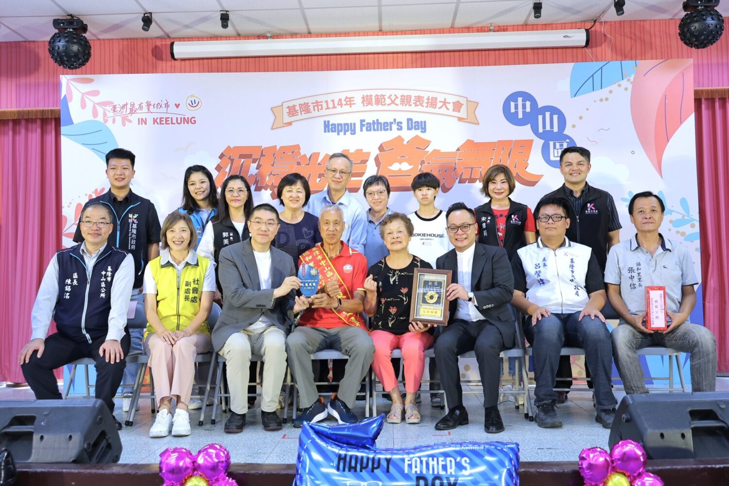 基隆市中山區公所今(6)日於通明里活動中心舉辦「114年模範父親表揚大會」,由市長謝國樑親自頒發獎牌與紀念品,感謝模範父親們對家庭無怨無悔的付出與守護,並提前祝賀父親節快樂。