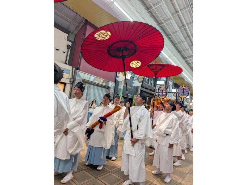 【News586/記者張淑慧報導】被譽為日本三大祭典之一的「祇園祭(Gion Matsuri)」每年7月在京都盛大舉行,巨大的山鉾緩緩穿梭於市區街頭,參與者肩扛鑾轎,步伐一致、氣氛莊嚴。今年隊伍中多了1位「台灣囡仔」,來自國立高雄大學財務金融學系(財金系)學生黃彥傑,他身穿白色法被,與當地居民共同扛抬神轎、執行傳統儀式,展現高大學生深入跨文化現場、實踐國際參與的行動力。