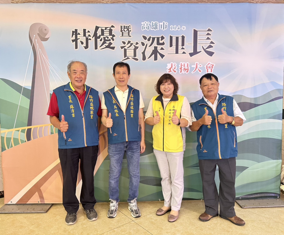 路竹區今年共有三位里長榮獲殊榮,分別是鴨寮里蘇清吉、下坑里王金水獲選「特優里長」,以及社西里馬旭來榮獲「資深里長(服務滿十年)」肯定。三人多年來在基層默默耕耘,不僅積極推動環境整潔、社區營造與公共安全,更致力於關懷弱勢族群,展現無私奉獻與服務熱忱。