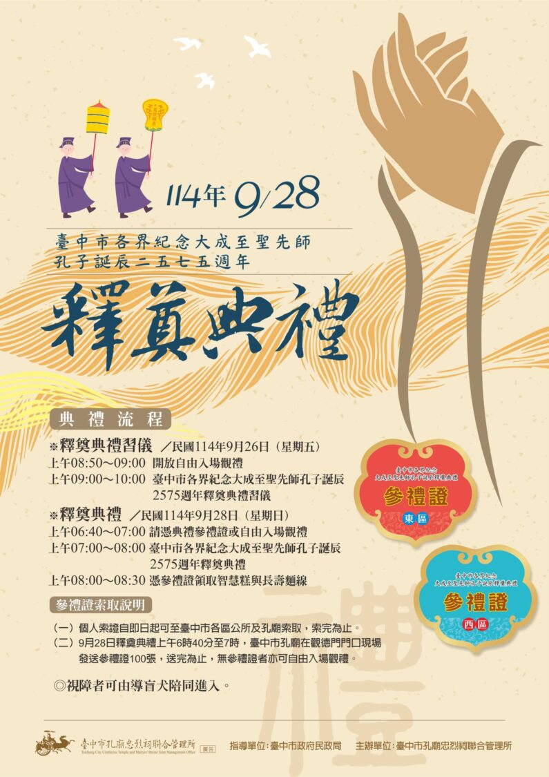 此篇文章最開始出處為: 9/10起開放索取參禮證! 中市孔子誕辰2575週年釋奠典禮9/28登場