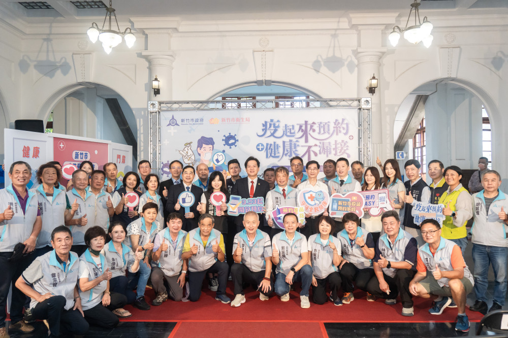 ▲竹市衛生局舉辦「疫起來預約,健康不漏接」系統上線發布會全體與會人員合影。(圖/竹市府提供)