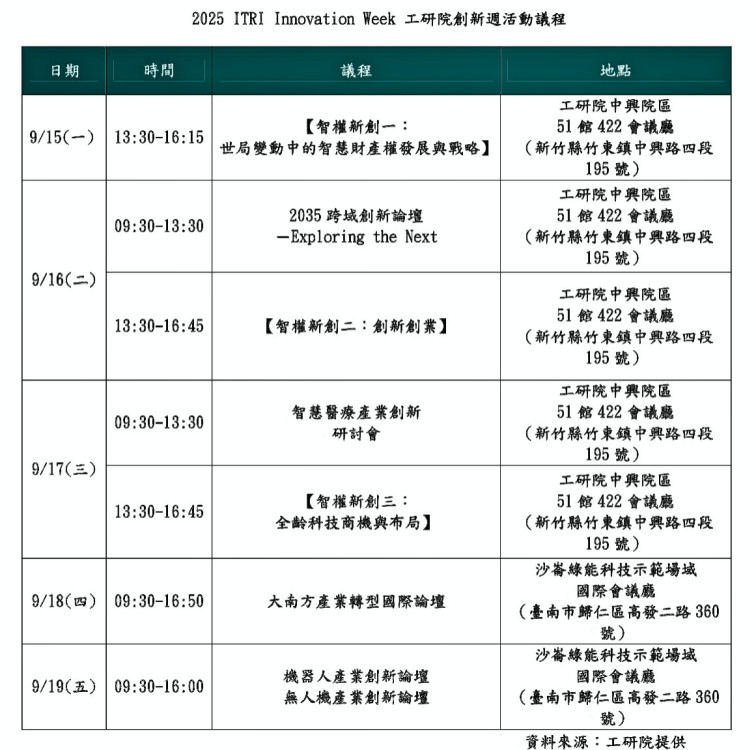 從智財權到新創 「工研院創新週」9/15重磅登場聚焦產業落實動能