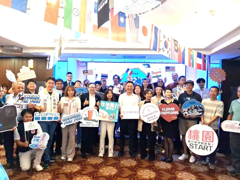 今日包括市府觀光旅遊局長陳靜芳、桃園區長許敏松、桃園市觀光發展基金會副執行長陳信守、桃園市旅館商業同業公會副理事長賴傳基、桃園市民宿發展協會副理事長林育任、桃園市民宿發展協會榮譽理事長鍾鉉時、GoPro官方代表亞洲宣傳大使Johnny Lo等均一同出席。(圖:記者彭慧婉拍攝)