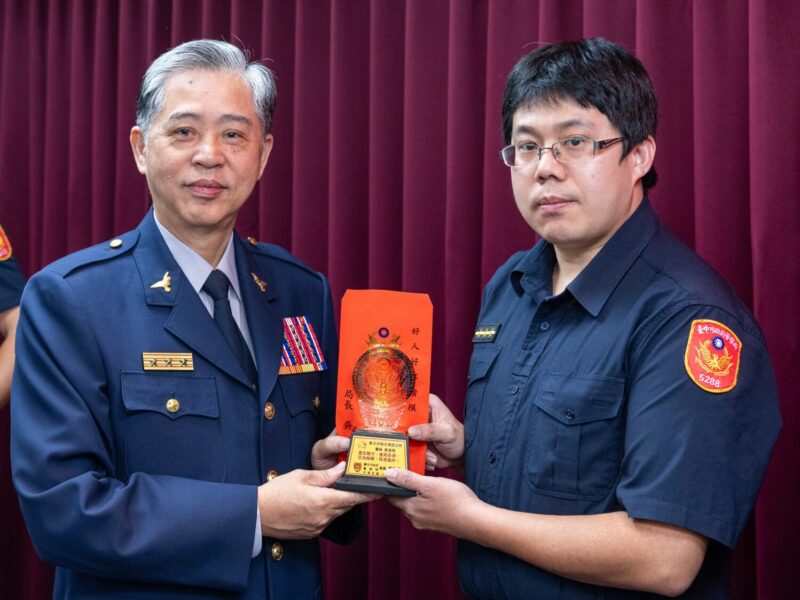 【焦點時報/記者許順德報導】中市警五分局水湳派出所警員黃逸翔於山林間搶救輕生女子一命,其忠勤精神展露無遺,使他膺選「好人好事楷模」;警察局長吳敬田在局務會報公開表揚黃員,致贈水晶獎座及千元禮券以資鼓勵。