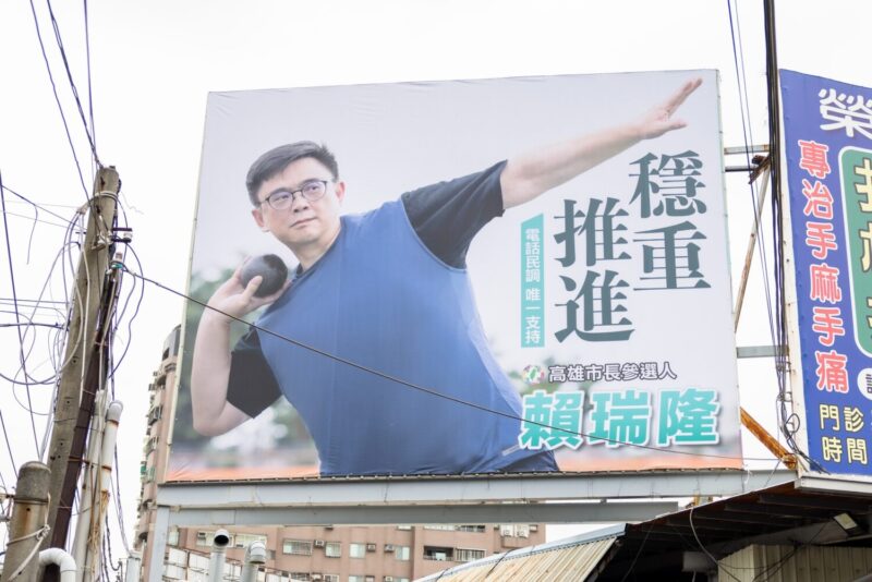 賴瑞隆說明,看板上的標語,「穩重」代表穩健負重,面對挑戰時不慌亂、不躁進;「推進」則象徵勇敢跨步、持續向前,這是對高雄的承諾。賴瑞隆表示,過去是「小胖子鉛球選手」,在運動場上,每一次推鉛球,都要沉著判斷、調整姿態,再用盡全力把球推出去。面對市政治理,會延續這樣的精神,冷靜應戰、全力以赴,把高雄推向更好的未來。