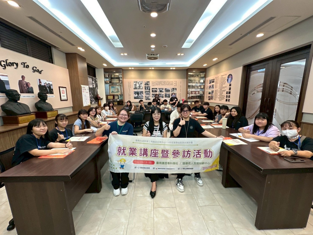 【大成報記者杜忠聰/臺南報導】市長黃偉哲重視原住民族職涯規劃與就業,勞工局 114 年規劃 4 場原住民就業促進講座暨職場參訪活動,18 日首場聯合臺南護理專科學校,於璐德老人長期照顧中心辦理。