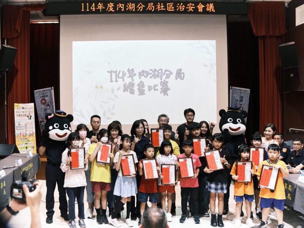 今年的治安會議最具特色的一項活動是「內湖分局114年繪畫比賽」,由內湖區小學生參與。學生們用畫筆表達對治安、詐騙防範及婦幼保護的深刻理解。得獎學生作品在會議中一一展出,並在熱烈的掌聲中,由內湖分局長親自為獲獎同學頒發獎狀及獎金。許多家長和居民表示,這些作品不僅展示了學童們對犯罪的認識,也期待他們能一同守護內湖的治安。