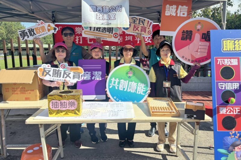 關西鎮公所政風室主任蘇羿綸說明,此次於活動中安排宣導廉政主題是「廉能」及「反詐騙」等,宣導攤位設置導遊戲,輔以廉能、反貪、反詐騙及公務員廉政倫理規範等議題之有獎問答,藉由趣味遊戲方式吸引參與民眾及其孩童的參與意願,也讓民眾更加認識政府「五打七安」、「反詐騙」、「消費者保護」等重要議題,培養清廉價值觀。現場民眾反應熱烈,表示活動新鮮又有趣,也能深植廉潔誠信與識詐防詐的觀念,展現關西鎮公所對誠信經營及提倡全民反詐騙之重視,共同打造陽光透明的城市。