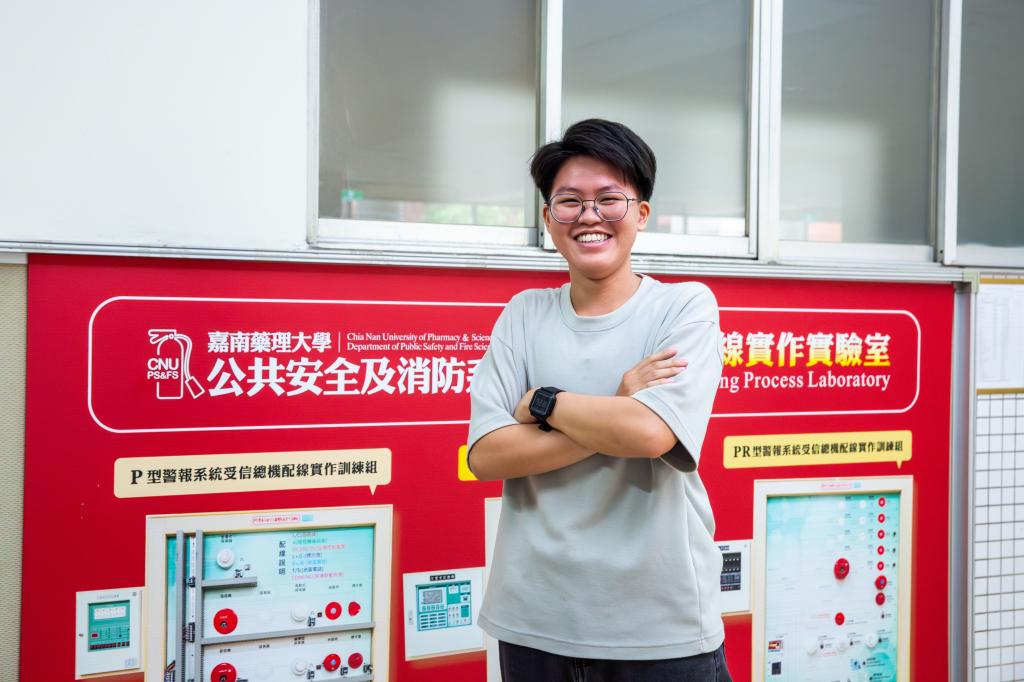 剛升大二黃奕銘,受到爸爸與姐姐在消防產業工作影響,以消防系為唯一志願,甫入學的他,積極參與系上國考讀書會,並在學長伴讀下,還未升上二年級,便在暑假破紀錄考取「消防設備士」。黃奕銘表示,能順利通過讓他驚喜,目前已規劃上修高年級學分,期許能提早畢業並考取「消防設備師」,早日進入消防界貢獻所學。