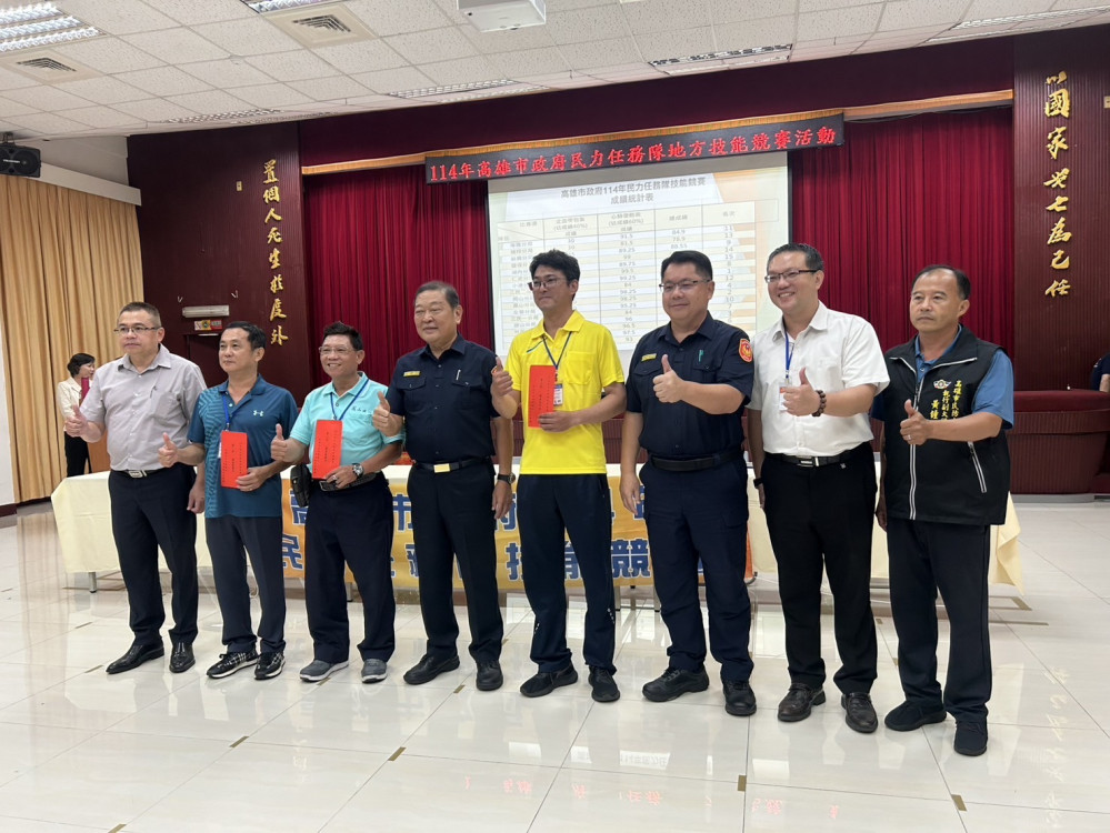 【勁報記者張淑慧/高雄報導】為有效運用民力,發揮防衛自救功能,同時驗證民力訓練成果,高雄市政府於本(9)月23日(二)假警察局大禮堂辦理「114年民力任務隊技能競賽」為全國首場的民防競賽,整個活動在警民合作且歡樂中畫上美麗的句點。由全市各分局遴選10名民力菁英編組參與民防競賽,競賽項目分別是心肺復甦術(簡稱CPR)及止血帶包紮等2項。