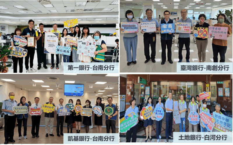 此外,地政局進一步與本市14家金融機構合作推動地政防詐跨域便民服務,包括臺灣銀行南創分行、土地銀行白河分行、玉山銀行台南分行等,提供貸款抵押設定併案申辦地籍異動即時通服務。此項措施讓民眾在辦理貸款時,透過金融機構即能了解不動產產權保護措施,進而提出申辦,全面保障自身財產安全。