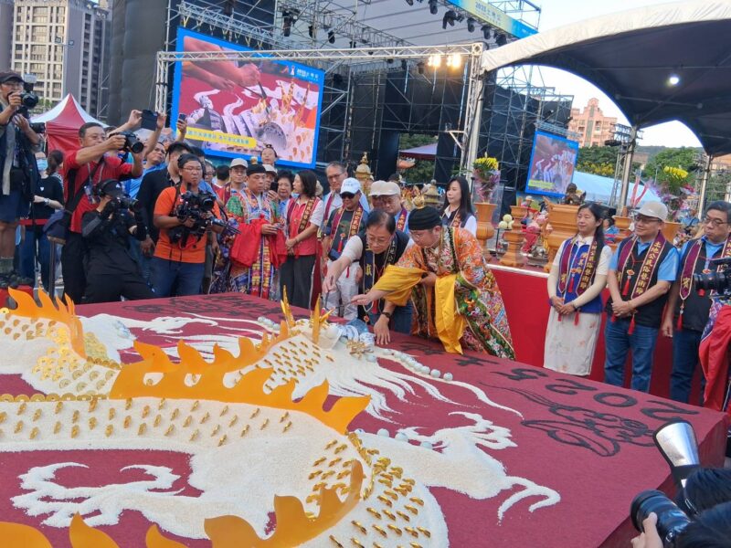 【News586/記者彭慧婉報導】「2025土地公民俗藝術節」主獻大典,今(27)日下午在桃園區新永和市場停車場舉辦,桃園市長張善政親自出席,以三獻禮及450公斤白米打造的「米龍」點睛儀式,展現傳統工藝與宗教藝術的融合。張市長表示,土地公信仰彰顯華人社會對土地與自然的敬畏與感恩之情,每年桃園都會舉辦全臺最具規模的「土地公民俗藝術節」,今(114)年已邁入第18屆,活動規模再創新高,來自全臺各地及海外的土地公神尊,從去(113)年的203尊大幅增加至266尊,已成為宗教文化的重要交流平台。立法委員萬美玲、市議員陳美梅、張碩芳、市府文化局長邱正生、桃園區長許敏松、桃園信用合作社理事主席蘇家明、桃園市工商發展投資策進會副執行長暨平鎮廣隆宮主任委員陳萬得、桃園大廟景福宮暨桃園慈護宮主任委員簡征潭及各宮廟代表等均一同出席活動。