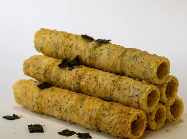 除了經典的香草口味外,「節節高昇蛋捲」還推出芝麻、伯爵紅茶、香濃可可、靜岡抹茶、濃醇咖啡與岩燒海苔等七種口味,每一款都經過反覆試驗,追求口感與香氣的完美平衡。