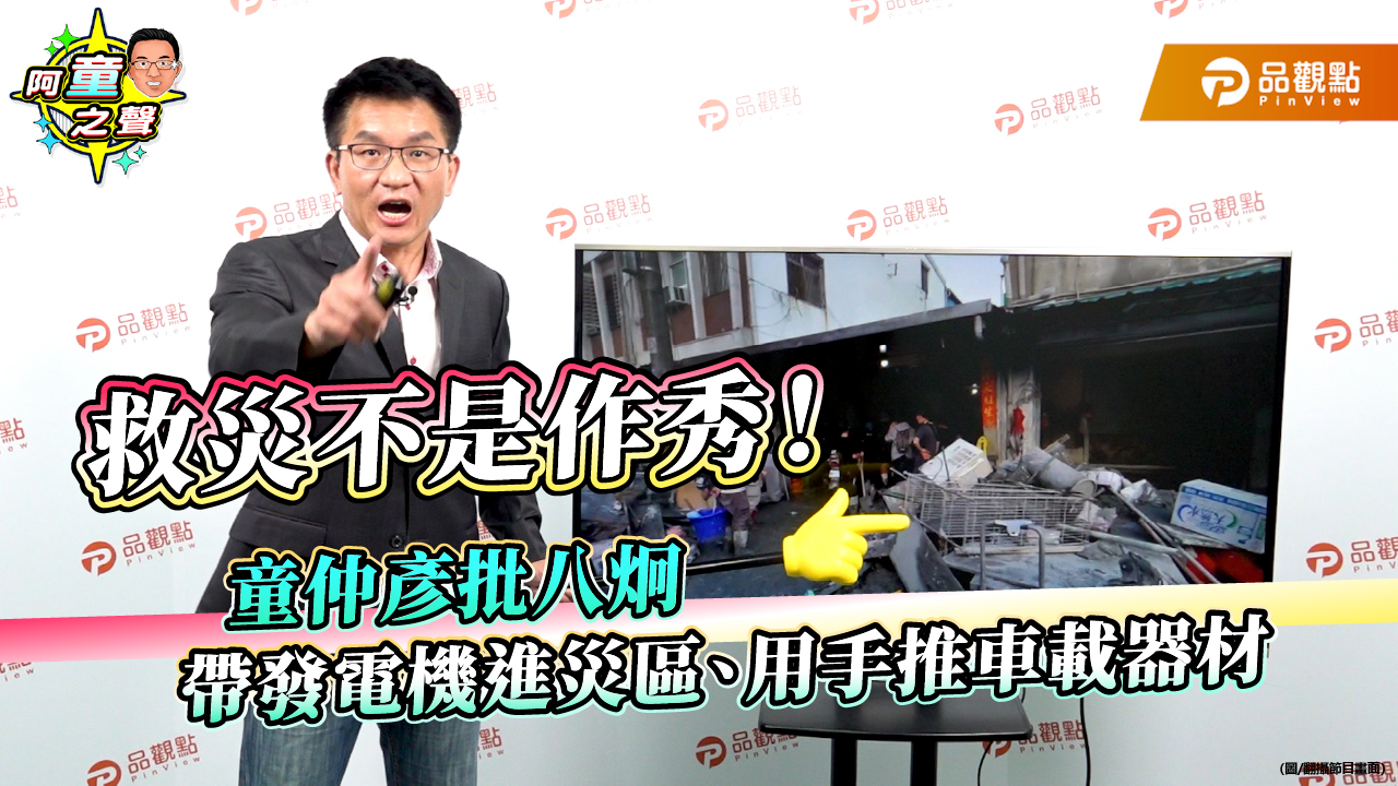 童仲彥特別讚揚慈濟志工的付出,指出現場幾乎看不到政府單位調度,反而是慈濟在發放物資、設置醫護站。他也提到救災期間曾收到「下游潰堤」的簡訊,造成現場恐慌,後來才知是經濟部進行引流,痛批政府通報系統出問題,「弄得現場跟屍速列車一樣」。