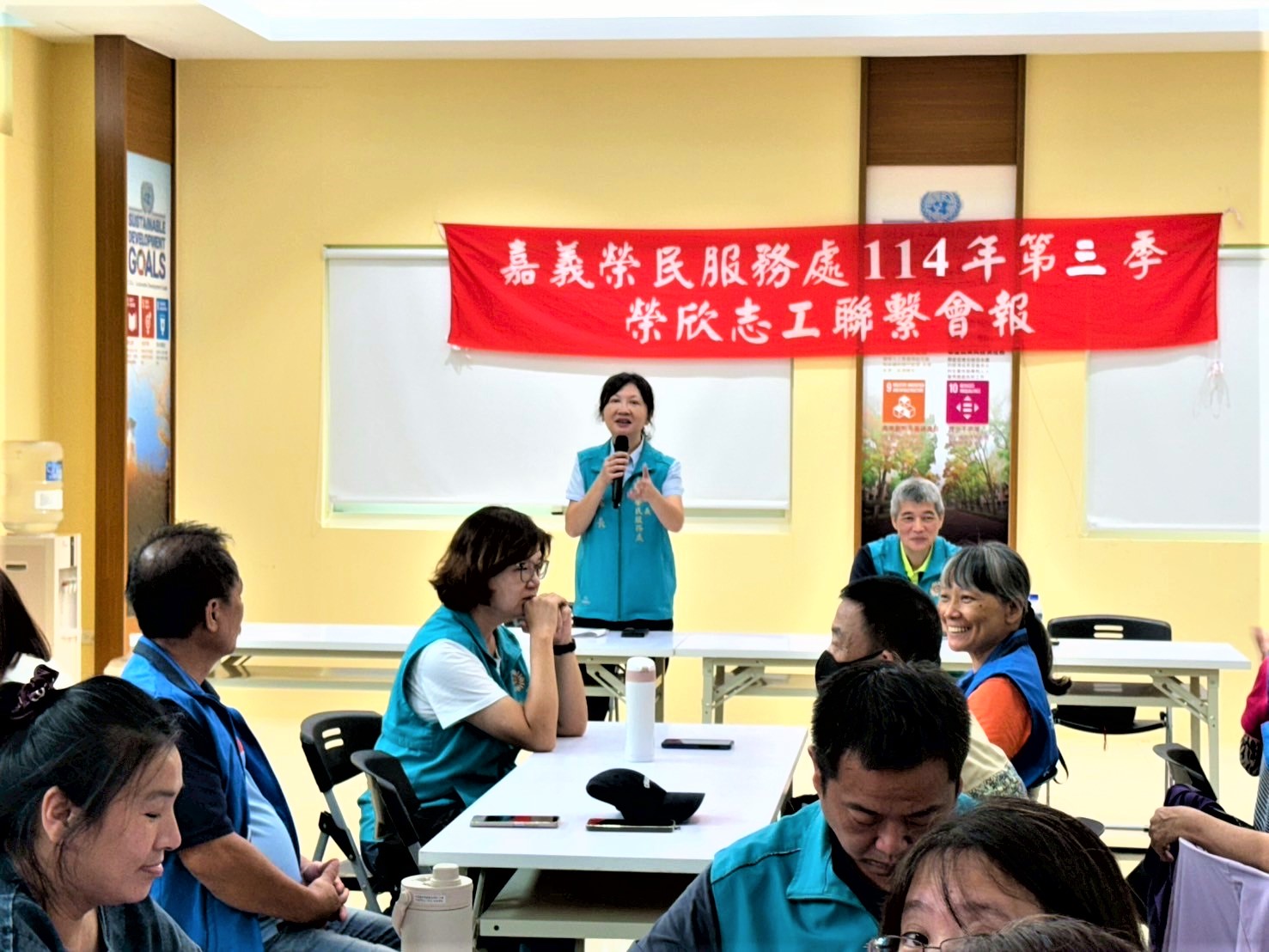 〔焦點時報/記者侯姵伃嘉義市報導〕嘉義榮民服務處近日舉辦「114年度第3季志工聯繫會報」,由處長許淑菁主持,計有40多位榮欣志工熱情參與。會報除檢視本季服務成果與工作重點外,對於先前協助丹娜絲颱風受災榮民眷災後復原有功的志工們,處長許淑菁更一一親頒慰勉金,感謝他們協助榮民眷災後復原的付出與努力。
