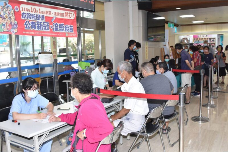接種對象與服務資訊:公費疫苗分階段開打,首波自 10 月 1 日起,對象包含 65 歲以上長者、55~64 歲原住民、孕婦、BMI≧30 或具慢性病、重大傷病患者及醫療防疫人員;11月起再開放 50~64 歲健康成人。成人肺炎鏈球菌疫苗則針對 65 歲以上長者、特定高風險族群及洗腎病人。施打地點在總院一樓大廳,週一至週五上午 8:30–12:00、下午 14:00–17:00,週六上午 8:30–12:00,服務至疫苗用罄。