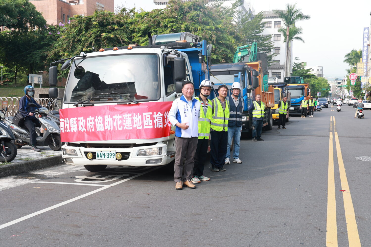 花蓮災變,大量土石亟待清理,南投縣長許淑華隨即下令馳援協助救災。1日上午由工務處長張弘岳統籌,調派鏟土機2部、挖土機2部及傾卸貨車2輛,共計6部機械,緊急出發前往花蓮。行前處長張弘岳特別向同仁叮囑任務要點,要求各機具及人員依指揮投入救災,同時務必注意安全。