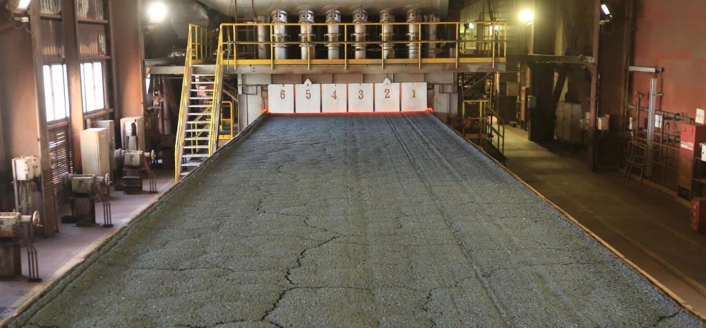 圖/為維持高爐內原料的流動性及透氣性,鐵礦砂須先在燒結工場製成具透氣孔洞且粒度大小均勻的塊狀燒結礦,才能投入高爐生產鐵水。