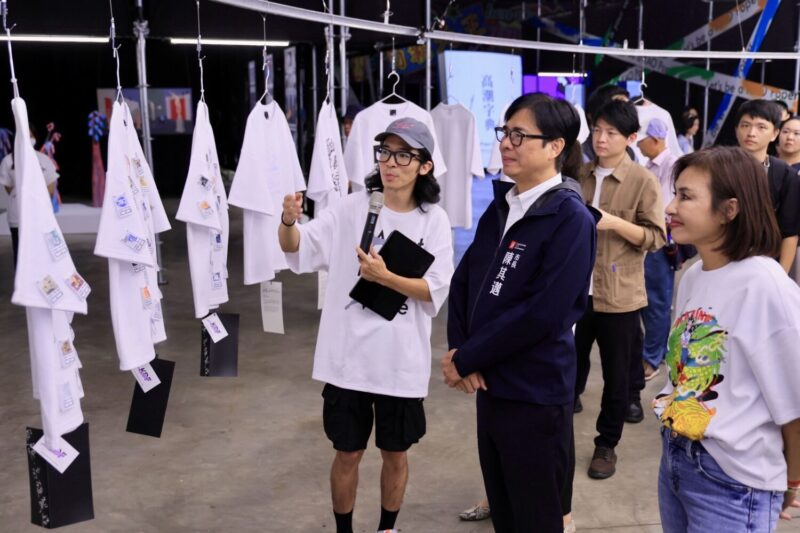 2025高雄設計節今(2)日於駁二藝術特區開展,將高雄變成一個潮牌、一種潮流,60多位創作者共同參展、走秀,詮釋他們眼中的高雄態度。市長陳其邁與策展人林唯哲攜手創作專屬於高雄的潮T,陳其邁認為高雄是一座自由奔放、生猛有力的城市,能自在表達自我的主張及價值,歡迎大家參觀高雄設計節,一同參與擁有獨特風格的高雄潮流。
