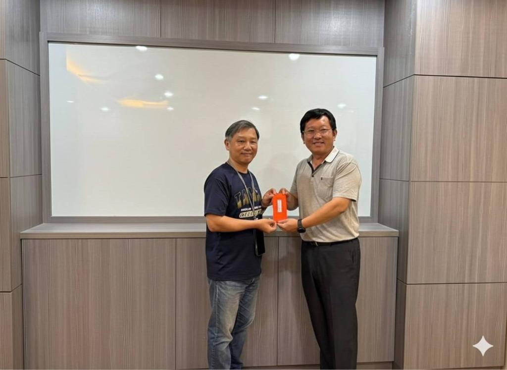 圖說:德億建築事業鄭兆佑董事長( 右1)與龜山國小校長丁伯強合影。( 圖/德億建築事業提供)