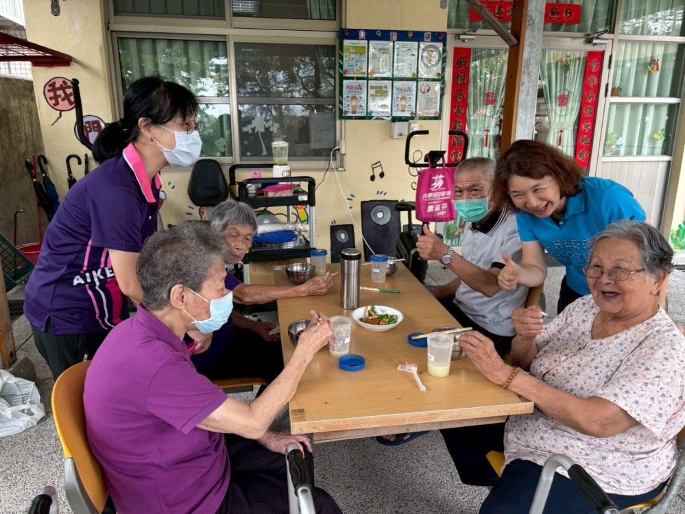 日照中心主任葉儒旻表示,為讓長輩們都能安心享用美食,工作人員在食材挑選上費盡心思,準備多樣化食材,不僅有香噴噴肉片與香腸,也為茹素長輩準備豐富食材,包含鮮甜彩椒、爽脆玉米筍、口感滑嫩秀珍菇及豆干等,所有食材都經過大家仔細清洗與處理,確保新鮮衛生;從採買、備料到分串,每個環節都嚴格把關,只為讓長輩們吃得開心與健康。
