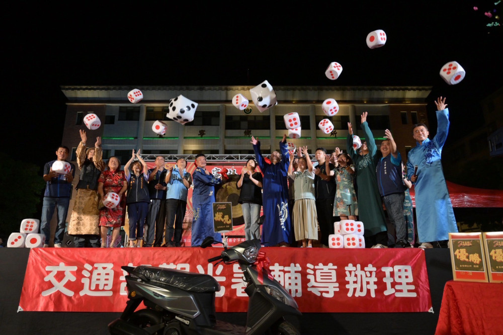 【勁報記者于郁金/金門報導】2025金寧鄉中秋博狀元活動4日晚間在金寧鄉公所前廣場登場,千名鄉親齊聚一堂,熱情參與這場一年一度傳統盛會;金門縣政府觀光處處長許績鑫與金寧鄉長楊忠俊、鄉代會主席黃文欣一同為活動開博,在骰子聲與歡笑聲中,現場氣氛瞬間沸騰,讓大家提前感受到濃厚中秋氛圍。
