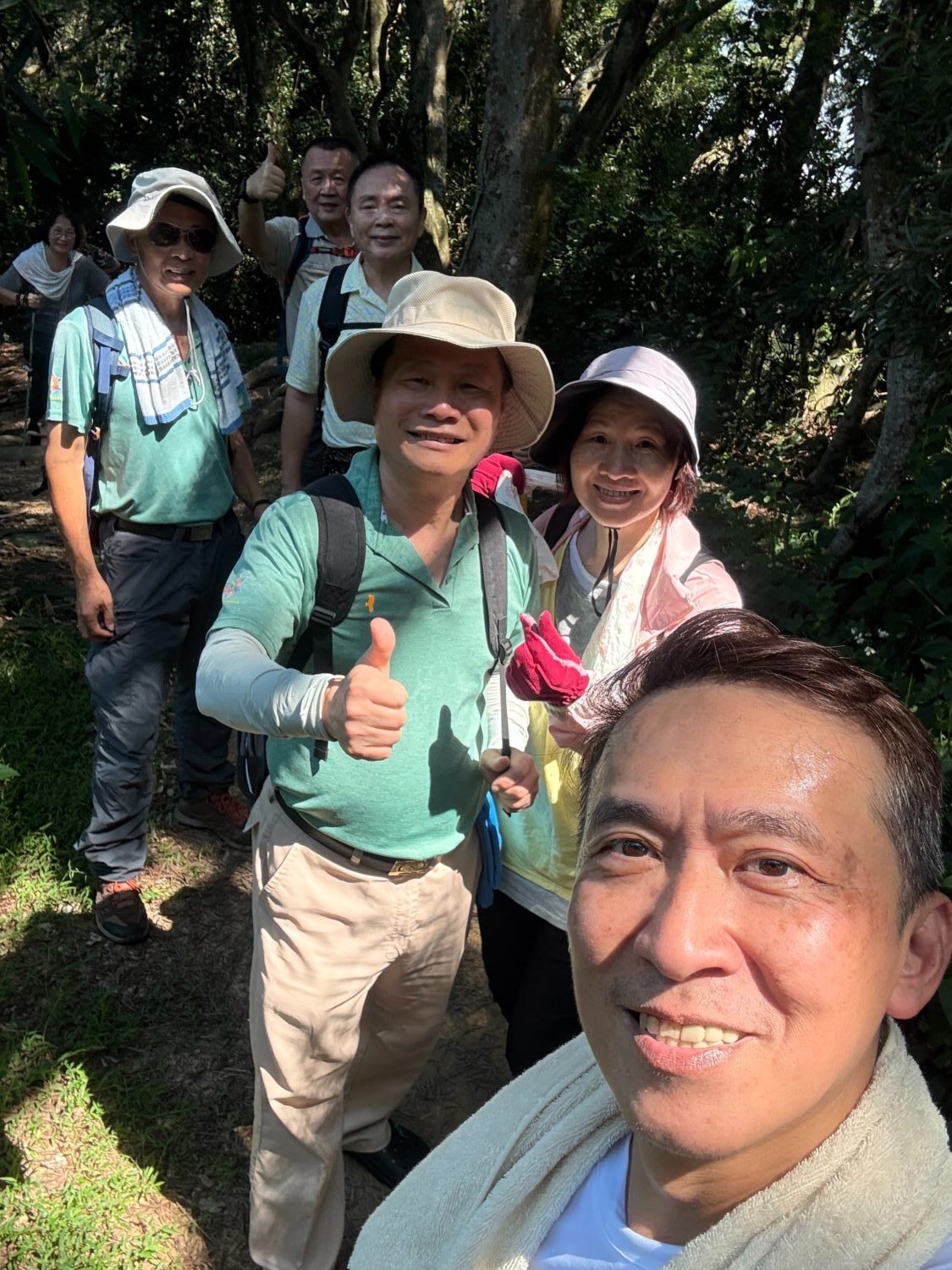 清晨八點,大家陸續在北屯區日光溫泉會館停車場集合,晨霧輕繞山頭,氣溫微涼,成員們興致勃勃、精神滿滿。八點半整隊啟程,隊伍中有四對夫妻同行,彼此相互打氣,沿途笑語朗朗,將登山路走得更添溫暖與活力。
