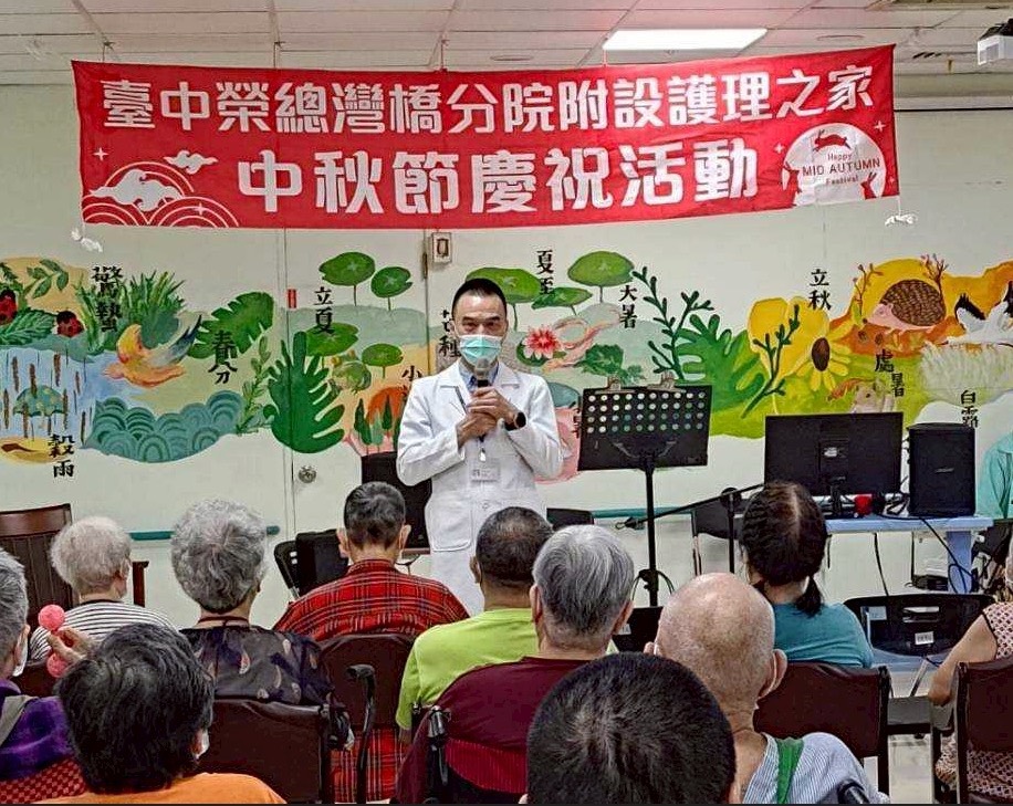 【勁報記者于郁金/嘉義報導】秋節來臨,臺中榮總灣橋分院護理之家舉辦「月圓餅香,樂音滿響」活動,與住民及榮民眷長輩團聚共慶佳節,同時結合將到來榮民節,表達對榮民先進敬意與祝福;陳正榮院長親率護理部主任、社工室主任及團隊,與嘉義榮服處副處長曾秀琴逐一向長輩獻上「圓滿福袋」,以月餅搭配保健飲品傳遞關懷與祝福;護理之家團隊精心安排豐富節目,讓中秋團圓與榮民節感恩精神相互結合,現場熱鬧又溫馨。