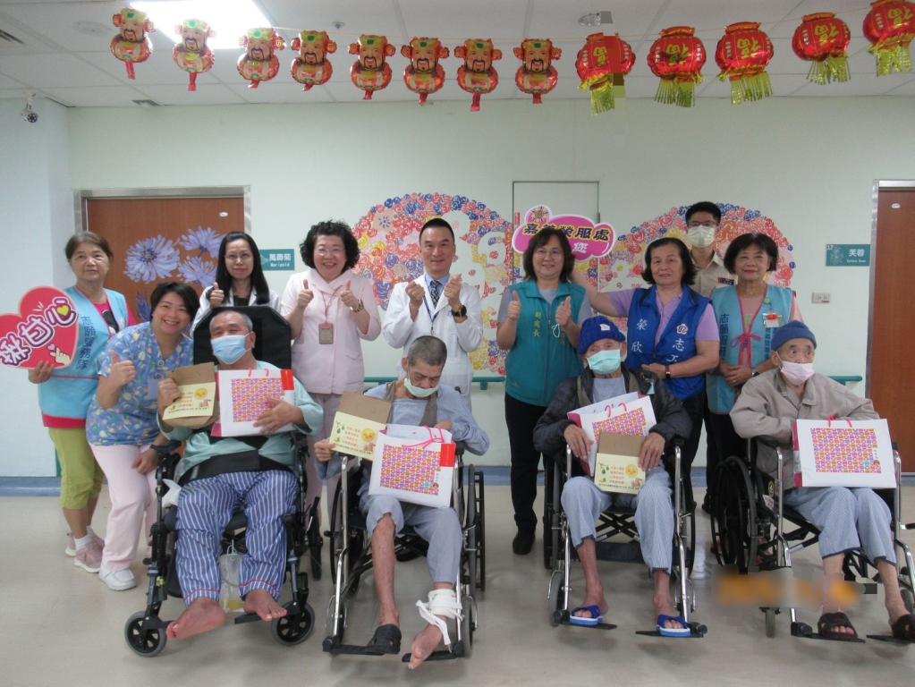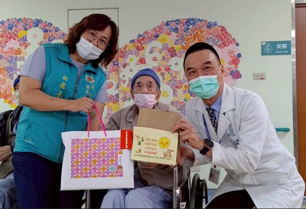 嘉義榮服處副處長曾秀琴蒞臨灣橋護理之家,與陳正榮院長一同致贈秋節禮品,並探視臥床榮民及榮眷長輩,陳院長與曾副處長親切致意,送上溫暖祝福,讓長輩們臉上綻放笑容,現場洋溢著溫馨節日氛圍。