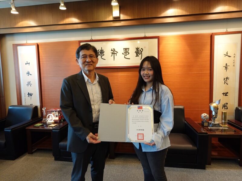 樹德科技大學校長王昭雄也特別勉勵林同學,要把握大學四年的學習機會,充實專業與實力,未來成為業界最閃亮的一顆星。王校長強調:「把孩子交給樹德科大,學校一定能培育出最有競爭力的人才。」