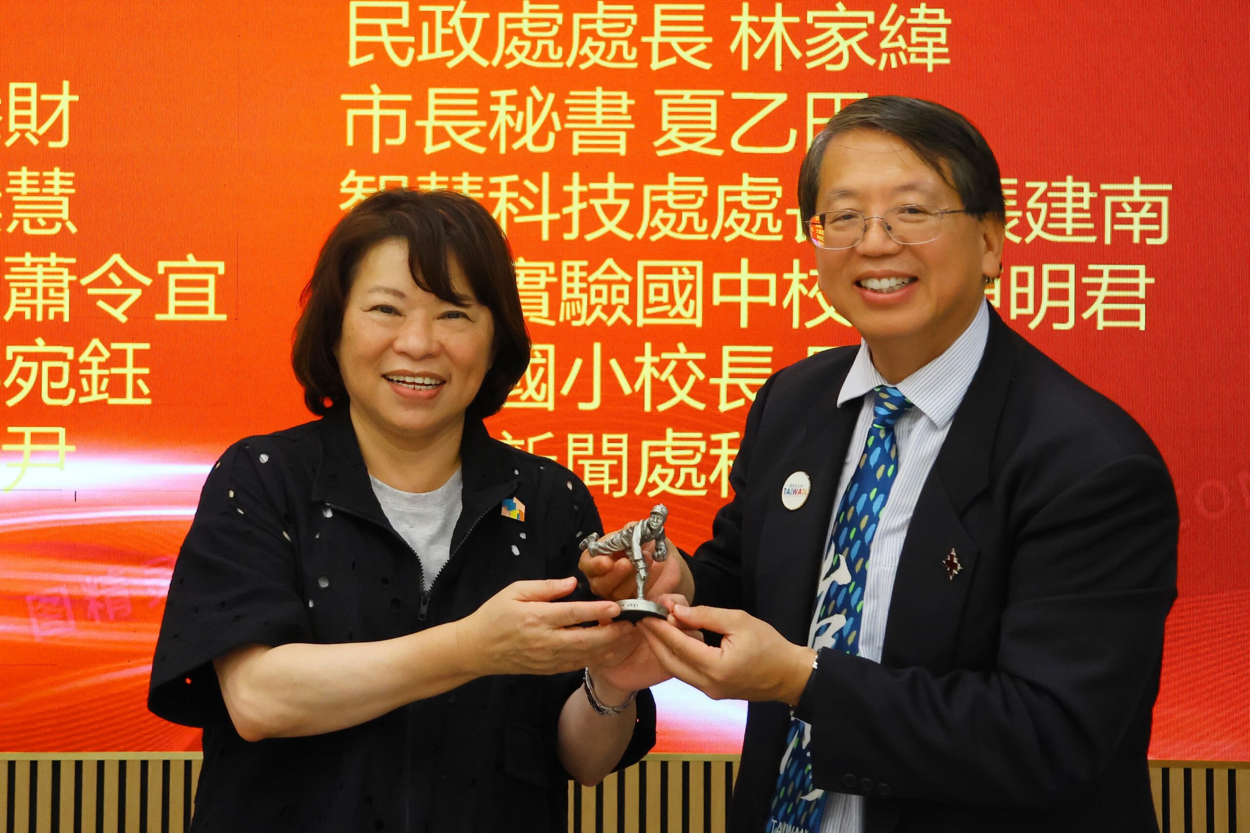 因此,黃敏惠也特地贈送代表嘉義市精神的KANO投手吳明捷的銅雕給紐約地區的僑胞,由江明信總裁代表接受;江明信總裁與紐約台灣商會會長林慶甫也回贈紐約大都會棒球隊球帽及寫著「Chiayi」(嘉義)字樣球衣,以運動精神與滿滿熱情交流,展現溫暖情誼。
