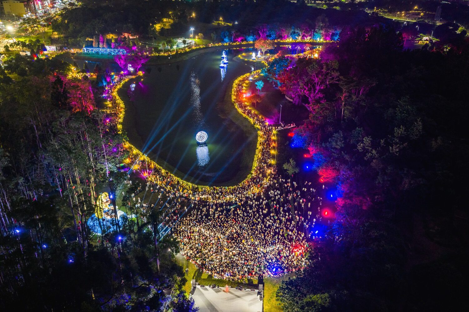 除了夢幻主題掀起熱潮,今年的表演卡司更是星光閃耀,媲美跨年晚會。開幕晚會由「亞洲最具指標性大型幻術師」吳冠達帶來《夢境魔幻秀》,光影、雷射與空中幻術交織,讓觀眾驚嘆連連;隨後「鐵肺歌后」戴愛玲與「情歌王子」李聖傑接力開唱,全場大合唱、燈海搖曳。中秋節當晚(6日),郭靜與周蕙攜手獻唱經典情歌,歌聲伴隨月光與湖影,將浪漫氛圍推至最高潮。