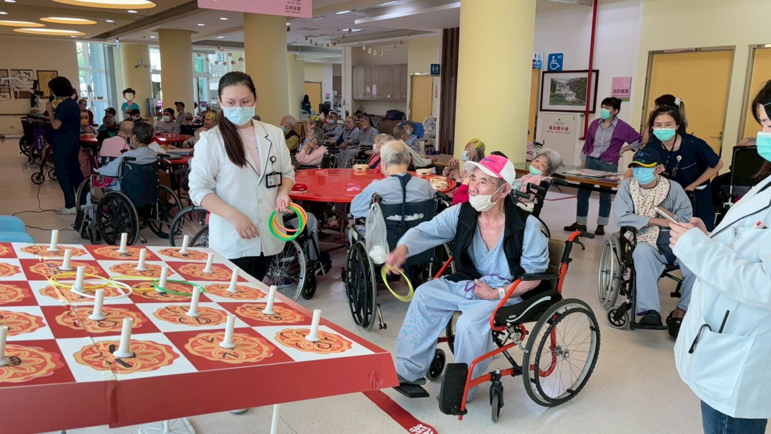 活動除了烤豬為重點外,另由該院張仁義院長親自主持開場,向住民致以中秋佳節的誠摯祝福,且特別說明機構近期在環境與服務上的改造創新,期許未來能為住民提供更溫馨、安全與人性化的照護空間;另在現場安排輕鬆有趣的套圈圈活動及歡唱KTV,讓住民能夠在等待烤豬之餘,參加趣味比賽,住民玩的不亦樂乎提供獎品激勵住民參與,並由院長親手頒獎,住民開心合照領獎。