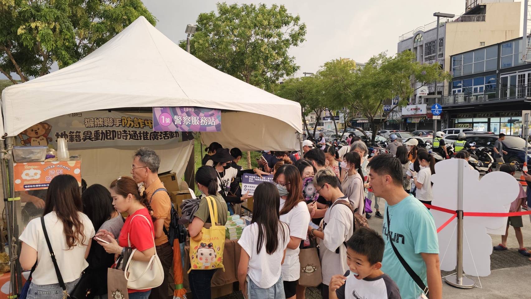 為持續提升全民防詐意識,警察局與地政處、地政事務所特別在中秋連續假期,在「光織影舞-光影夢境開幕日」及「玉皇宮-中秋天赦日」等2處活動會場入口共同設置 「猴熊聯手防詐中」宣導攤位,推廣「地籍異動即時通」、「165打詐儀錶板」及有獎徵答小遊戲,將防詐知識寓教於樂。