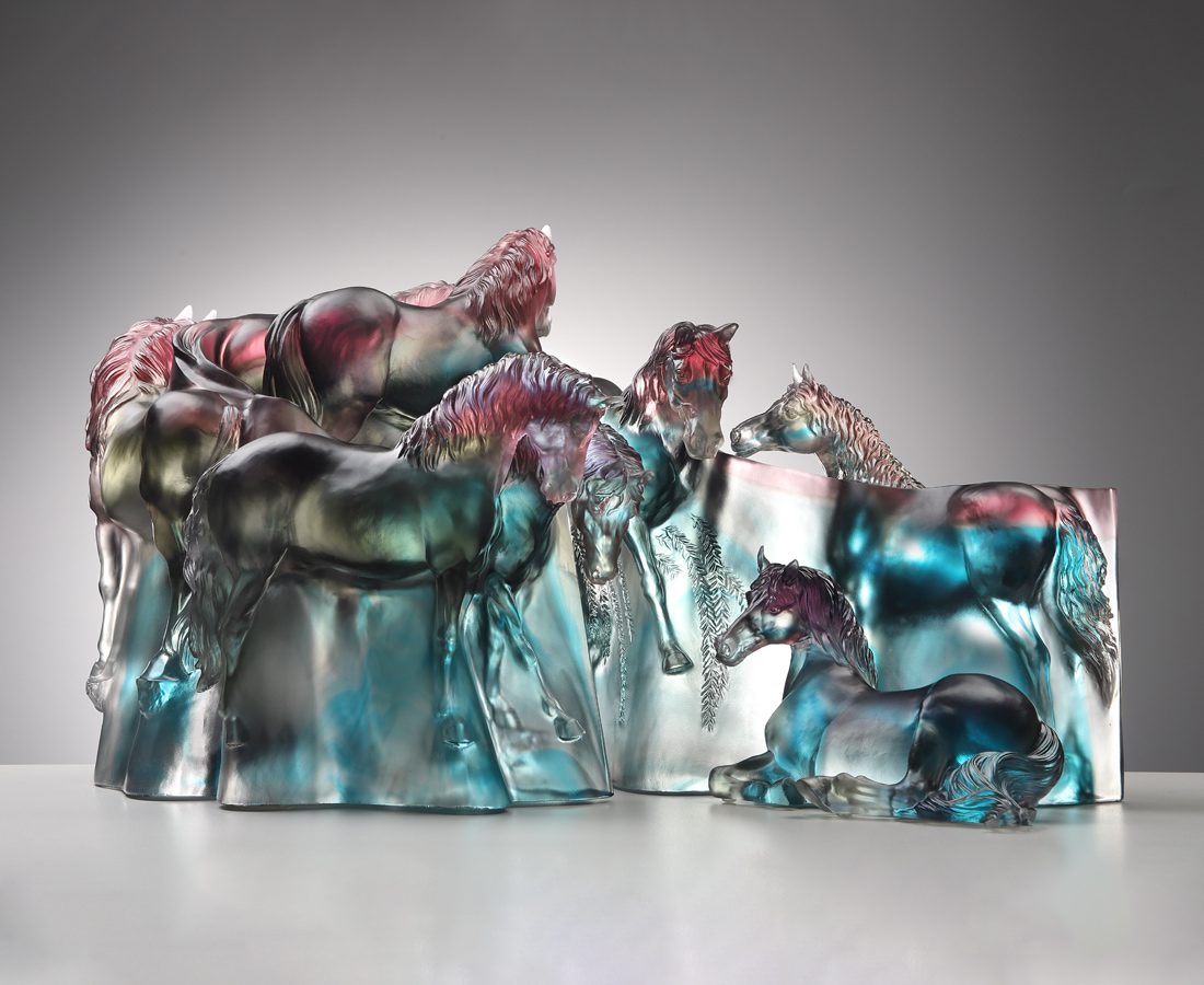故宮聯名新作《八逸》,以〈八駿圖 軸〉為靈感,將古畫馬姿轉化成立體琉璃藝術。 照片提供: tittot 琉園