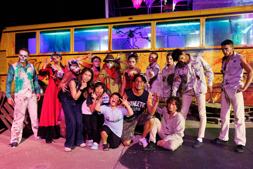 ▲亡靈終點站夜間表演秀吸引眾多遊客與鬼怪演員們合照。(圖/六福村提供)