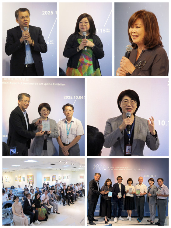 「第九屆光之藝廊創作獎」頒獎典禮,10/7下午大墩文化中心大墩藝廊(四)舉行,包含臺中市政府文化局長陳佳君、大墩文化中心主任陳文進、龍寶建設董事長張麗莉 、大亞洲藝術聯盟協會理事長鍾經新等多位貴賓,皆到場為得獎藝術家祝賀。參選作品並同步同場展至10/15。