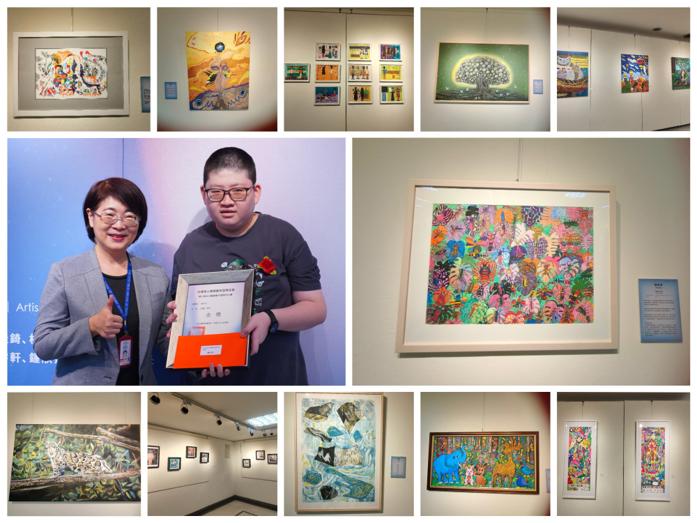 此外,12/2至12/28協會更將在國立公共資訊圖書館,舉辦身心障礙藝術家年度聯展,也將徵求共同主辦協辦贊助單位,期盼社會大眾一起參與支持,給身心障礙藝術家們一份強大的支持力量。 —— 展覽資訊 展覽日期|2025年10月4日(六)—10月15日(三) 展覽地點|台中市大墩文化中心 大墩藝廊(四) 頒獎典禮|2025年10月7日(二)13:30 指導單位|文化部、臺中市政府文化局 主辦單位|台灣身心障礙藝術發展協會 共同主辦|力馥建設股份有限公司、精湛建設股份有限公司、龍寶建設股份有限公司、麗明營造股份有限公司 共同協辦|義世代名品國際有限公司、林碧秋、馬珊珊、陳品竹、蕭珍琪、林娟如 贊助單位|加和營造開發有限公司、李永進、林麗虹、吳孟儀、王秀蓮、彭國峰 得獎藝術家介紹 金獎:蘇亦禾《哈囉!早安》 蘇亦禾自小罹患普瑞德威利氏症候群,以畫筆開啟生命之窗。自九歲起屢獲肯定,至今已六度榮獲文薈獎,並於2018年榮獲總統教育獎,同年隨高雄市政府教育局赴日參展。今年更首次參加光之藝廊創作獎便奪得金獎。 在母親長年無私陪伴下,亦禾逐步走出困境,從特教班裡找到真正的同伴,也在藝術中建立起自信。他的作品以鮮活的昆蟲與繽紛的色彩為題,展現對生命的熱愛與對世界的好奇,象徵著他勇敢綻放、不向命運低頭的姿態。 銀獎:陳道明《森林狂想曲》 自幼被診斷為重度自閉症並伴隨過動症,卻在文字、藝術與音樂之間找到了與世界交流的方式。他將注音、字母化為畫中草木與景象,並持續探索油畫、木工與陶藝。童年學琴的經驗,也讓他展現音感天賦,如今更以薩克斯風考取街頭藝人證照,成為光復新村熟悉的演奏者。對道明而言,文字、畫筆與音符是獨特的語言,也是他綻放生命光彩的座標。 銀獎:羅國彰《台灣雲豹》 羅國彰為輕度自閉症者,在家人與師長的支持中,羅國彰將生命經驗化為創作養分,透過畫筆描繪出一個多元、和諧、充滿包容的世界。他的作品多以動物為主角,展現單純快樂的聚會與互動,也承載著社會共融的意象。對國彰而言,創作既是自我療癒,也是分享,他希望觀者能在作品裡感受到溫暖與啟發。 銅獎:吳佳錡《祈禱》 吳佳錡自幼被診斷為輕度自閉症,學齡前便在長庚醫院接受早期療育,以堅毅態度克服溝通與生活上的挑戰,並一路堅持於藝術創作。她自幼展現繪畫天賦,逐步累積多元媒材的技巧,最終畢業於玄奘大學藝術與創作設計學系。現於國家電影及視聽文化中心參與文物修復工作,亦持續以創作作為生命養分,邁向專業藝術家的道路。 銅獎:古采霓《山與海》 自小學習繪畫的古采霓,在成長過程中與躁鬱症相伴,學習在藝術與病症間取得平衡。現為國立臺灣藝術大學美術學系學生,持續以創作探索人際互動與情感紋理。她同時透過教授兒童美術與詩文書寫汲取靈感,期許未來能深耕藝術,邁向專業創作者之路。 銅獎:徐若鈞《會發光的樹》 自出生便與「表皮分解性水疱症」相伴,徐若鈞在日復一日的傷口與疼痛中,選擇用畫筆堅持生命。她畢業於國立清華大學藝術與設計學系碩士,曾兩度榮獲「總統教育獎」,並獲藝術銀行與新竹市政府文化局典藏。作品結合東方媒材與絹布,甚至將藥單打漿入紙,將疾病化為創作養分,轉化為對生命的凝視與詮釋。對她而言,創作不僅是療癒,更是讓裂縫化為光亮,照進人們心中的力量。 佳作:詹政融《繪本:微光》 原在工地擔任監工的詹政融,因一次墜落事故傷及腰椎而需依靠輪椅代步。人生巨變後,他並未被擊倒,而是以樂觀態度重新出發,重拾畫筆,讓藝術成為療癒心靈的重要力量。 政融的作品裡,常出現象徵自我的紅帽角色「阿布」,替家人祈福、觀察世界冷暖,成為他與觀眾分享人生的化身。成長於高雄眷村的他,將多元族群的記憶融入畫布,作品不僅是色彩的堆疊,更承載生命風雨後的思索與真摯溫度。 佳作:謝宇軒《守護》 謝宇軒自幼以繪畫與文字作為與世界溝通的方式。雖然因自閉症而語言表達受限,他卻透過畫筆與詩句真誠抒發情感,逐漸建立起獨特的藝術風格。 高中畢業後,他一度在職場上過著單調的生活,但在家人與師長的鼓勵下,考取南亞技術學院時尚設計學系,並在創作中找回自信與方向。宇軒的作品帶有童心與詩意,既直率又純真,展現他對生命與親情的深刻體悟。 他曾因參與光之藝廊比賽獲獎而更加肯定自我,也更堅定邁向專業藝術家的道路。對宇軒而言,自閉症是「一生不離不棄的好朋友」,而藝術,則是他與世界連結的最真摯橋樑。 佳作:楊小樂《拼圖自傳》 患有自閉症的楊小樂擁有非凡的繪畫與漫畫天賦,儘管人際溝通充滿挑戰,繪畫對他而言是心靈的治療與最自在的表達方式。他自小接受漫畫課程指導,現已能完成長篇創作。 小樂的漫畫世界獨特而豐富,他擅長以貓咪為主角,結合其熱衷的軍事題材進行創作。他期盼未來能成為一名漫畫家,用畫筆分享他真摯而充滿想像力的世界。 佳作:杜岳《APDYM揀貨》 杜岳是一位非典型自閉症的藝術家,具備台澳雙重背景,畢業於台北海洋科技大學視覺傳達設計學系。 儘管個性淡然,杜岳的畫作卻始終洋溢著溫暖,透過獨特的視覺語彙表達對友情與歸屬的渴望。畫面中經常出現家人、朋友等「陪伴」的身影。對他而言,藝術是與世界連結的方式。他熱衷於將創作編輯成繪本,目前已有超過60本繪本獲國家圖書館典藏。杜