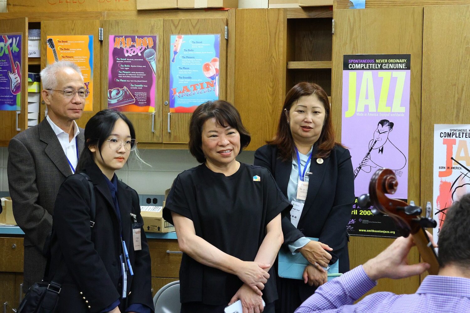 黃敏惠市長此行帶領市府團隊參訪族裔多元,且以新穎活潑教學見長的WW-P學區,同時也為其多元、活潑的教學方式印象深刻。其中,Maurice Hawk 小學推動雙語沉浸式課程(Dual Language Immersion, DLI),其特色為在數學、科學與語文學習中,同時融入中文與西班牙語教學。這不僅增強了語言能力,也培養了跨文化理解力。這樣的教育模式與嘉義市推動的「雙語教育」方向相呼應。