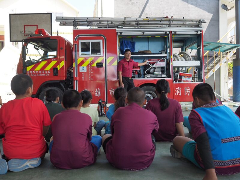 活動內容豐富多元,包括防火教育、心肺復甦術(CPR)教學、濃煙模擬體驗與低姿勢逃生演練,以及消防車裝備介紹等。透過互動與實作,學生能夠學習正確的防災知識。消防人員以生動講解與實地操作,教導孩子在火災發生時如何保持冷靜、判斷逃生方向並採取正確的避難行動,同時提醒大家平時應注意防火安全,降低災害發生的風險。