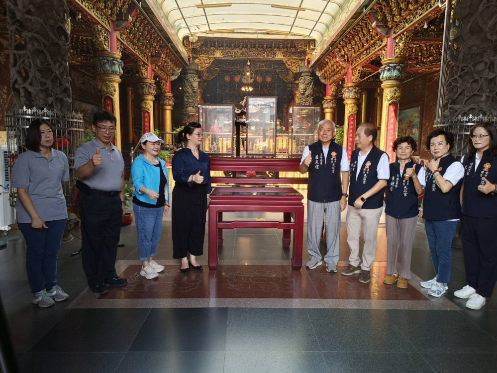 【大成報記者杜忠聰/臺南報導】安平開台天后宮近日獲得科頂科技工業有限公司董事長方怡清捐贈的紅木「頂下桌」神明桌,該桌將放置於天后宮文物館供民眾參觀,為廟方文物收藏再添重要展品。