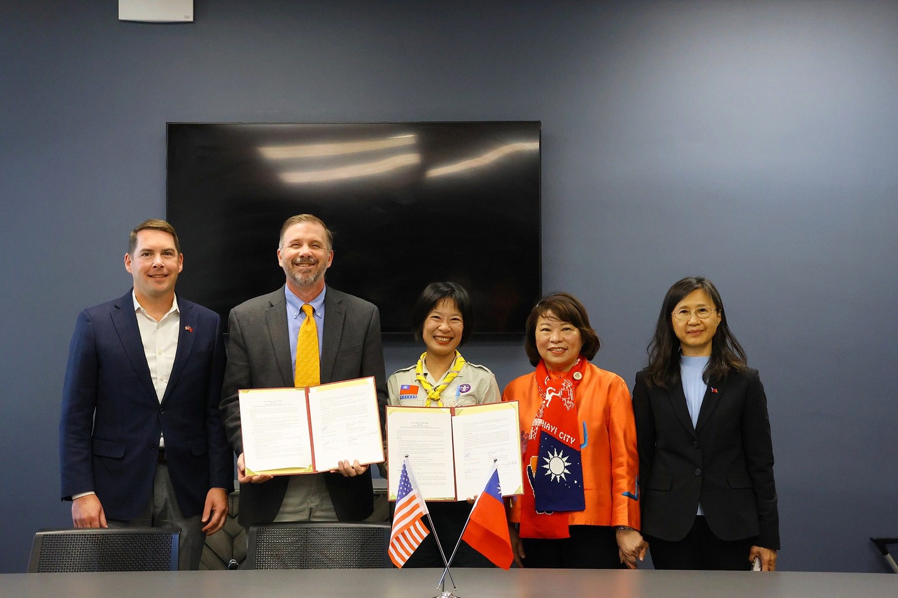 今年的升旗典禮仍然由嘉大附小的幼童軍與女童軍擔任護旗與升旗的工作,去年嘉大附小以「小小背包客」的方式隨市府團隊出訪雪城市獲得學校與家長的支持,今年也於5月即展開徵選和培訓,隨市府團隊訪問美國女童軍總會及雪城市。