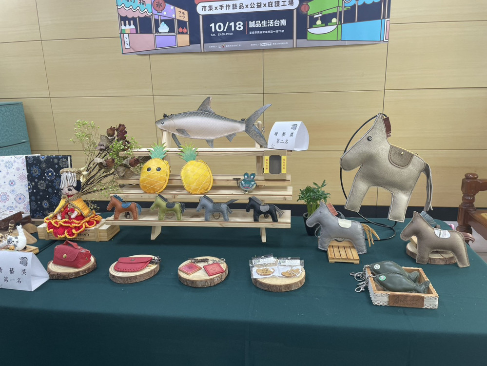 此次市集規模為歷年最大,共 26 個攤位。其中 6 家台南庇護工場帶來常溫禮盒、手工餅乾、客製化印務商品等;20 家手工藝品牌各具特色,包括「玩皮高手」等手工皮革攤、「苹空想像」等布包拼布攤,還有串珠、手工書、毛線公仔、中國結、手工皂等產品,種類多元豐富。