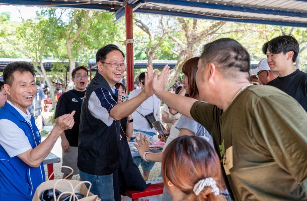 圖說:張市長與現場員工擊掌互動。( 圖/市府提供)