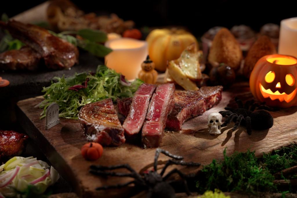 「Ciao西西里牛排餐酒館」於10月27日起至11月2日推出晚間限定的「女巫市集饗宴」,餐廳空間以藍、黃交錯的燈影營造古堡般的神祕氛圍,用餐期間還有機會巧遇女巫現身。萬聖節饗宴以義大利市集概念結合半自助形式呈現,可單點沙拉吧980元,亦提供三款主餐選擇,餐價1,480元起,須外加一成服務費。從沙拉吧、前菜、主菜到甜點皆融入節慶巧思。前菜區供應香料南瓜湯、義式炸飯糰、炸海鮮與西西里風味小食;甜點區則以十多款萬聖節造型甜品吸引目光,讓視覺與味覺一次滿足。