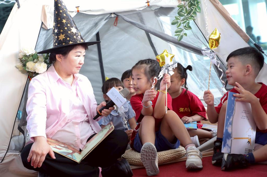 圖說:盧秀燕親自為小朋友朗讀故事書。(記者張亞痕攝)