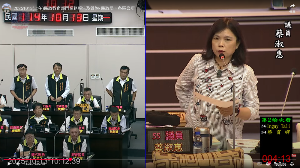 蔡淑惠說,台南市有37各區,結果只有玉井、南化和楠西,三個行政區域內沒有光電板,沒有種電,所以台南市真的成為一個光電城市了,種電面積這麼大,種電會為良田魚塭帶來甚麼影響,市府有關單位應該深入了解並關切,因為市民的態度已經從開始的支持,願意拿出自己的良田魚塭來種電,慢慢轉變成反對,中央和地方政府都應該來了解原因何在?